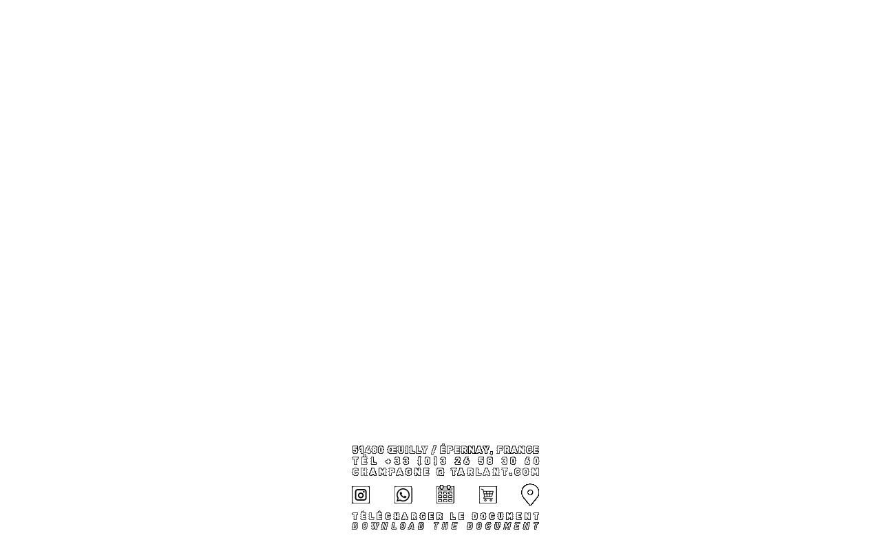 La Maison de Champagne Tarlant, propriété familiale, étend son vignoble de 14 hectares au coeur de la vallée de la Marne en Champagne, dans le village d'Oeuilly. Les cuvées de champagne : Cuvée Louis, brut nature La Vigne d'Antan, La Vigne d'Or, La Vigne Royale, Brut Zéro (brut nature), Rosé Zéro (brut nature), Champagne Tradition, Champagne Réserve, Champagne Rosé.